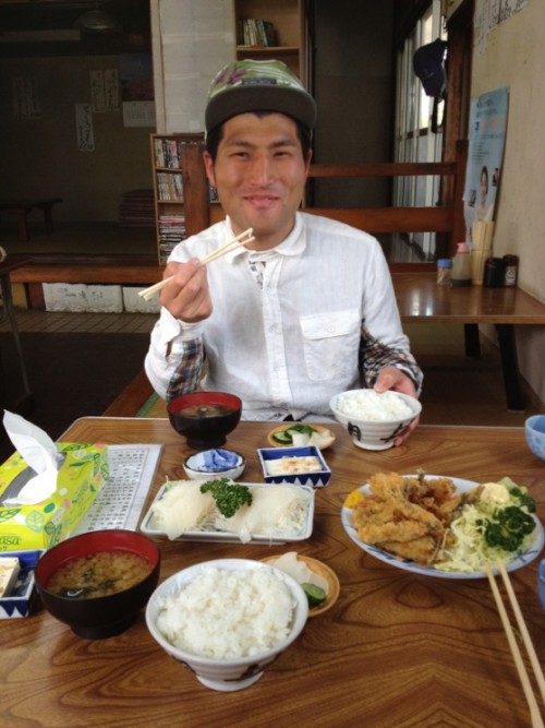 ランチ:ひろせへ 背黒イワシフライとイカ刺し定食をシェア(笑)鈴木じゃなきゃもっと上手かったかも。。。。(笑)仲良く食べました。