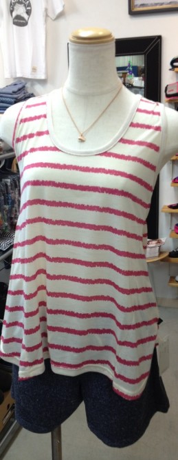 ボーダー柄のAラインタンクでバックデザインが可愛いです。色違いも入荷しました。