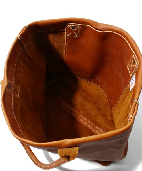 厚く丈夫なレザーを使用し、使いこむたびにその風合いの変化を楽しめるトートバッグです。