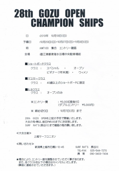 週末の日曜日 新潟でのGOZU OPEN皆さんお疲れ様でしたー!!!