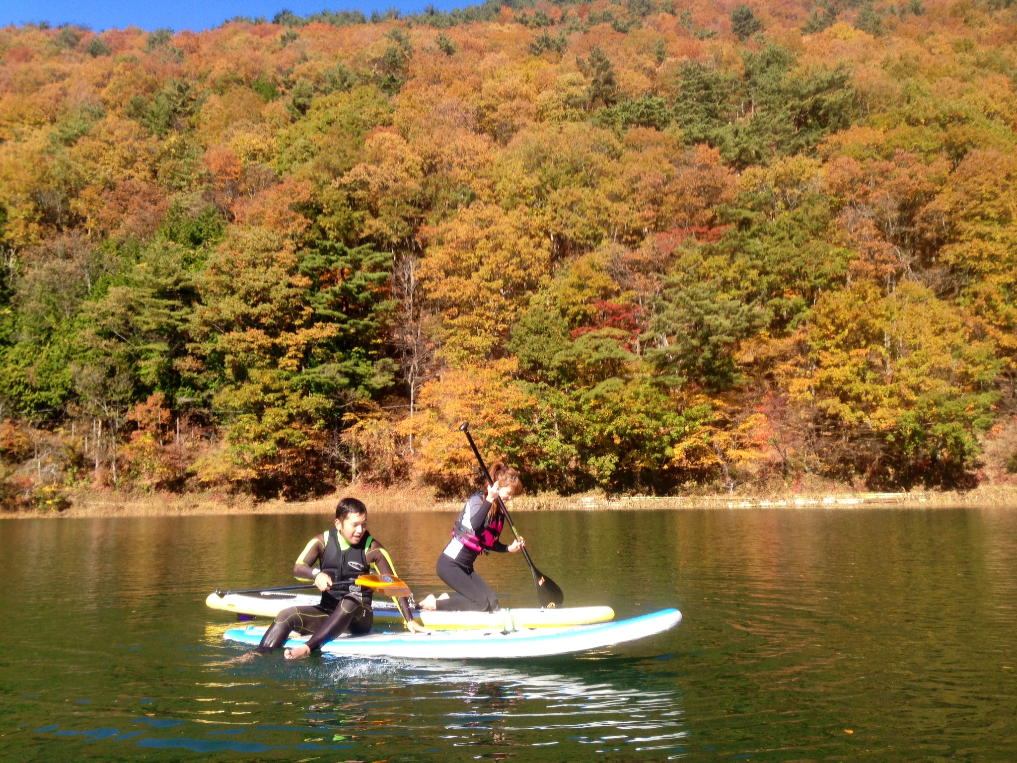 サーフィンスタートする方々と同時に、山梨で行うNATIVE・SUPスクールも4月からお客様よりお申込みいただき四尾連湖のSUPでのクルージング!を行っています。