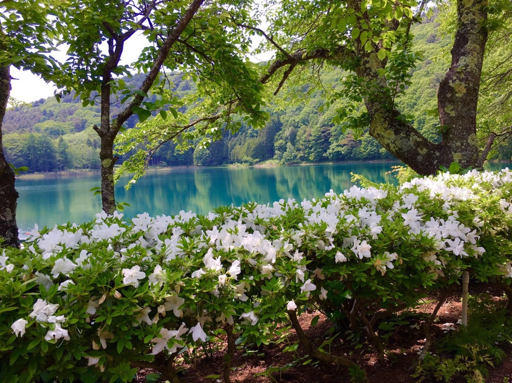 山頂湖にある1周1.2kmの木々に囲まれた静かな湖です。