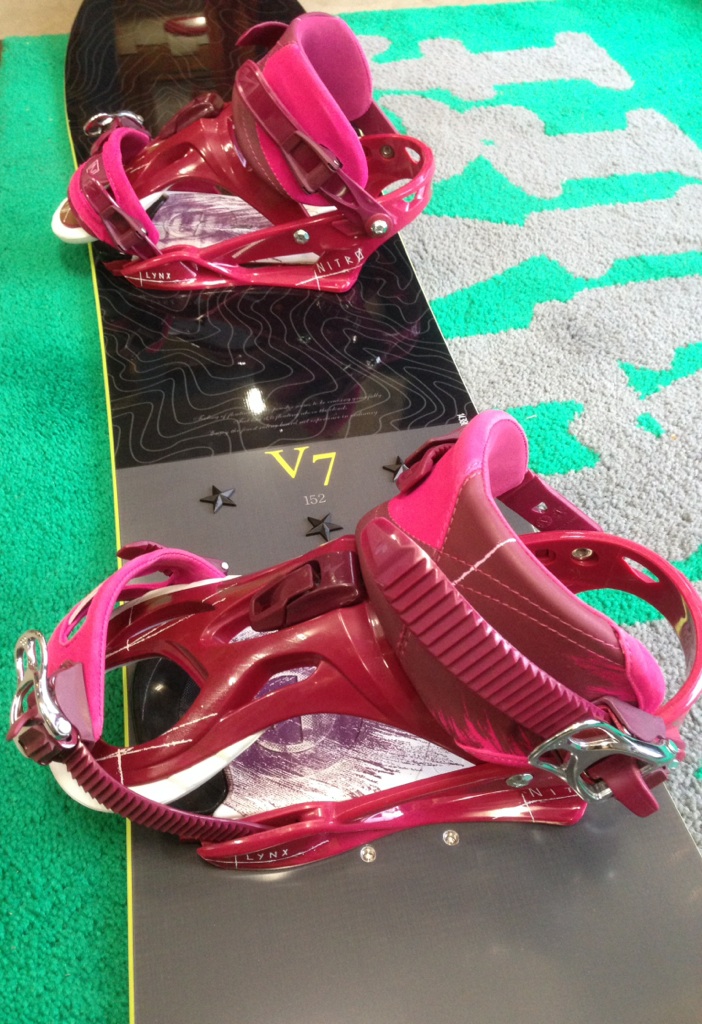 ボードはV7 スプリットテールスノーボードそしてNITROのバインを。