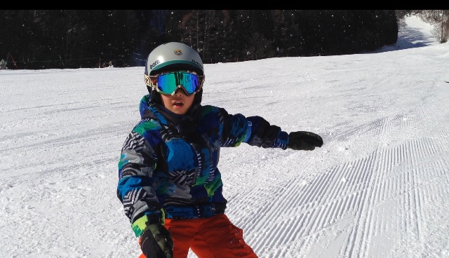 パパはもちろんサーファー。サーフィンのような動きで雪山を攻めながら楽しめるSNOWSURFも楽しんでいます。