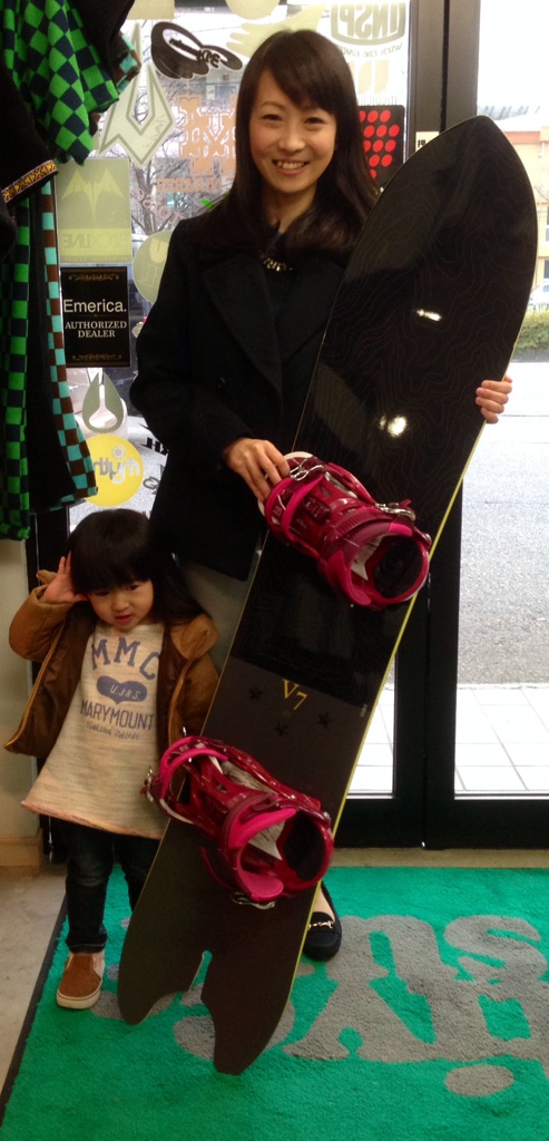 今から成長してくる子供たちと一緒に楽しめる雪山、この先の事を考えお選びいただいたボードはこちらV7スプリットテール。