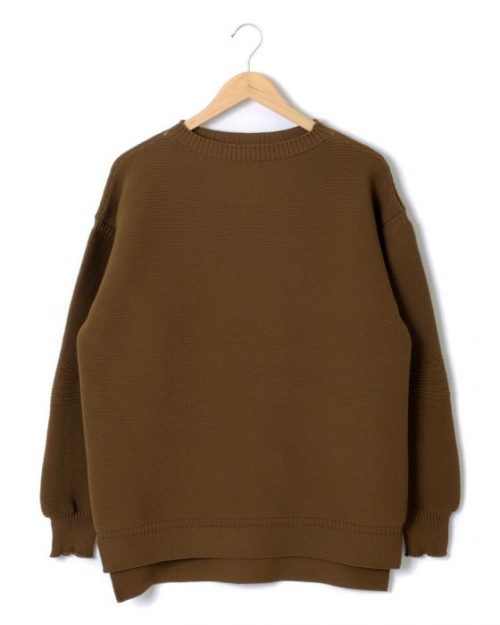 特殊な、【ホールガーメント®】マシーンを使用して編み立てたニットは従来のニットに比べ全く継ぎ目が無い為にごわつかず、伸縮性やフィッティングも抜群。