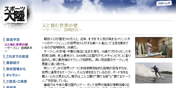 コンテストシーン有り、シェイパー田嶋三男との対談有り、日々の活動有り・・・など、見所たっぷり.