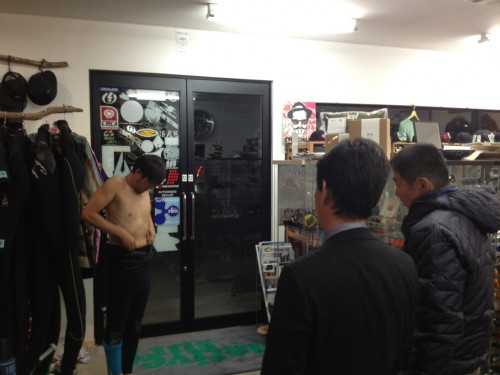 初のネックエントリータイプの伊藤さん↑脱着の仕方をSHOPにて試しながら説明しました。
