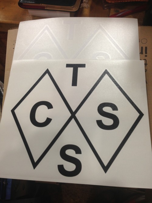 こちらも再入荷しました。TCSSステッカー BLACK・ホワイト すでに人気アイテムです。チェックしてみて下さいね。