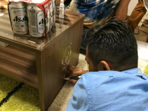 昨夜サーフボードメーカー【OUT OF CONTROL】のオーダーボードを納品に清人君ご来店。