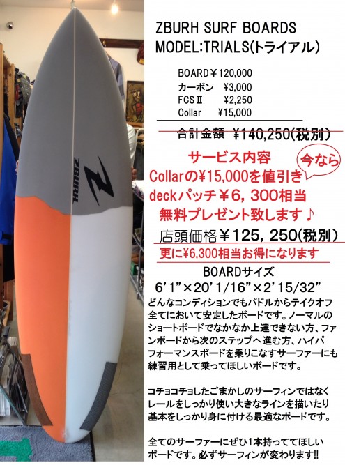 さぁ、店頭に並びましたZBURHサーフボード。
