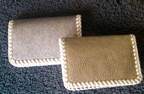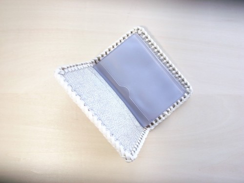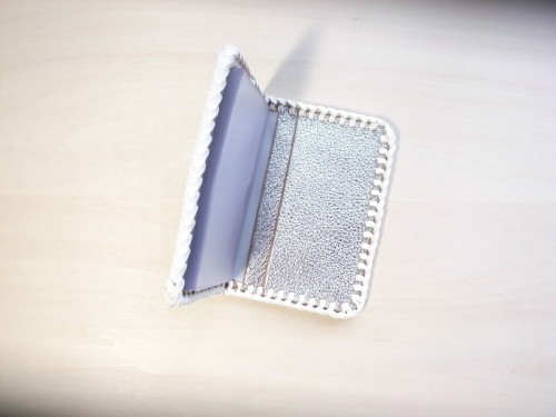 白とシルバー・ゴールドの革を使用した女性らしいカラーリングデザインはなかなか革製品で他にはないデザインです。
