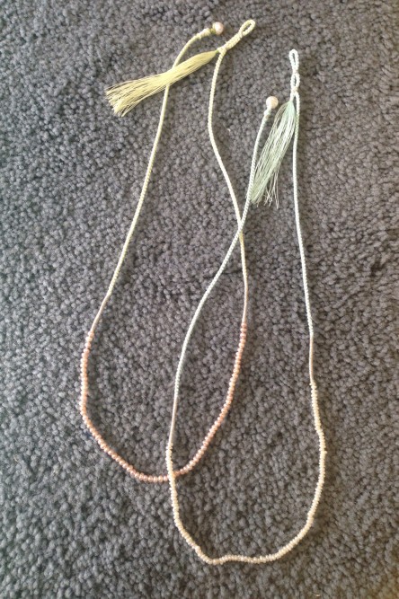 天然パール仕様で糸で編み上げた細かな作業もオールハンドメイド。