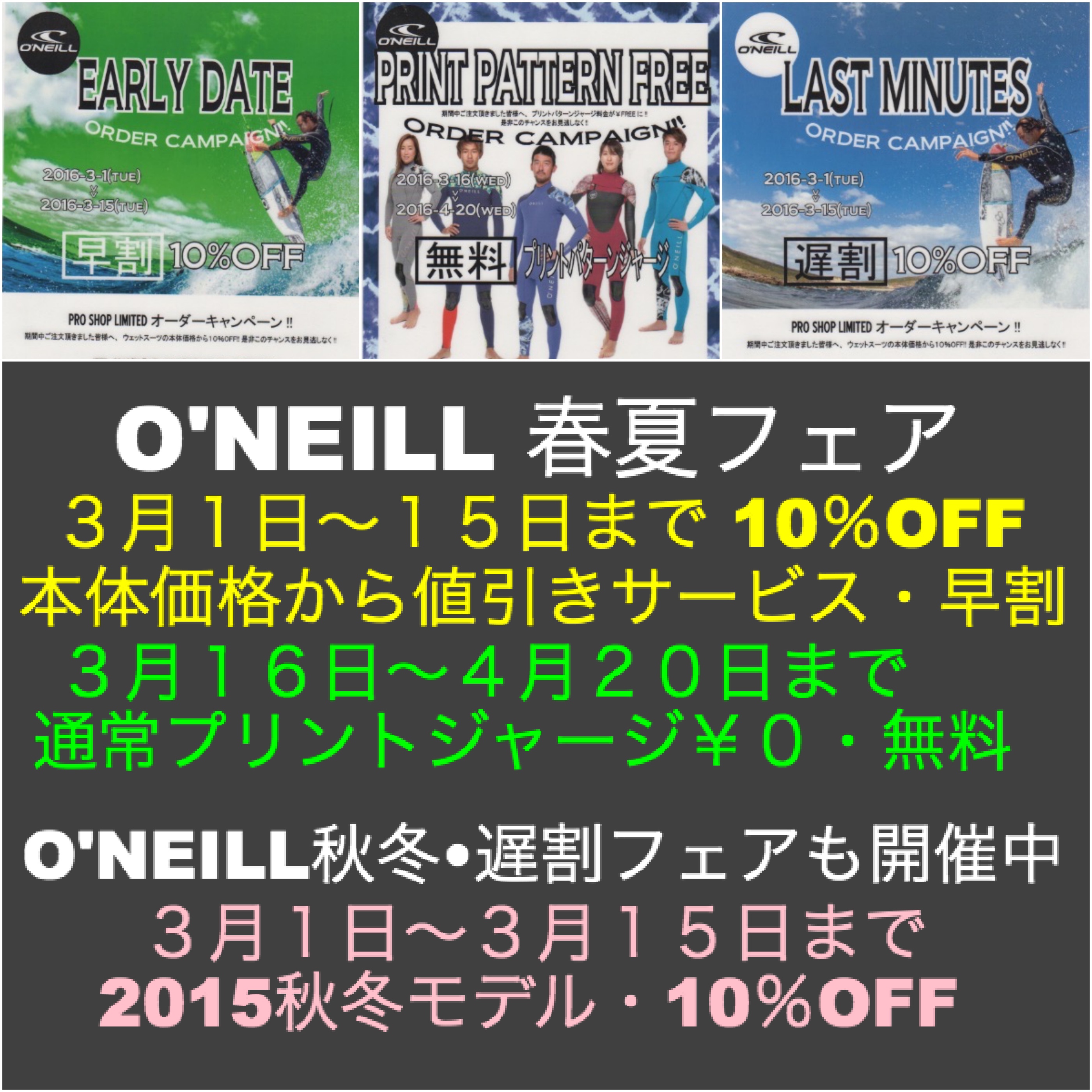 『2016年春夏新作ウエットスーツが本体価格から値引きの10%オフ・早割』