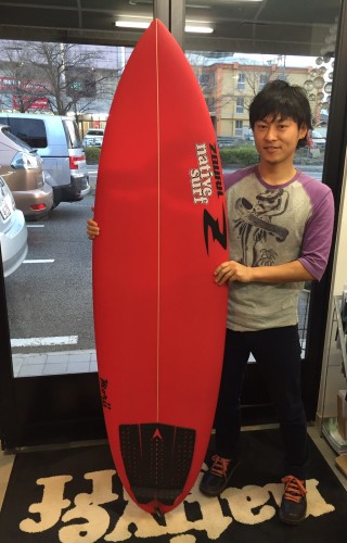 初おろし。調子よくていっぱい波に乗れ楽しめた様子を報告しに来てくれました。ボードご購入頂きよかったです♫乗れる楽しいサーフィンするのが1番ですので、思わずこちらも嬉しくなりました。この夏更に上達できると思います。