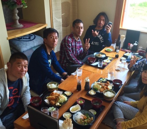 ランチみんなでシラス亭 午前の2ラウンドサーフィンでクタクタに〜。